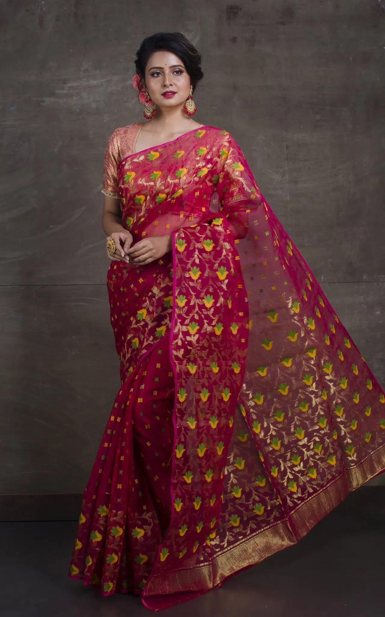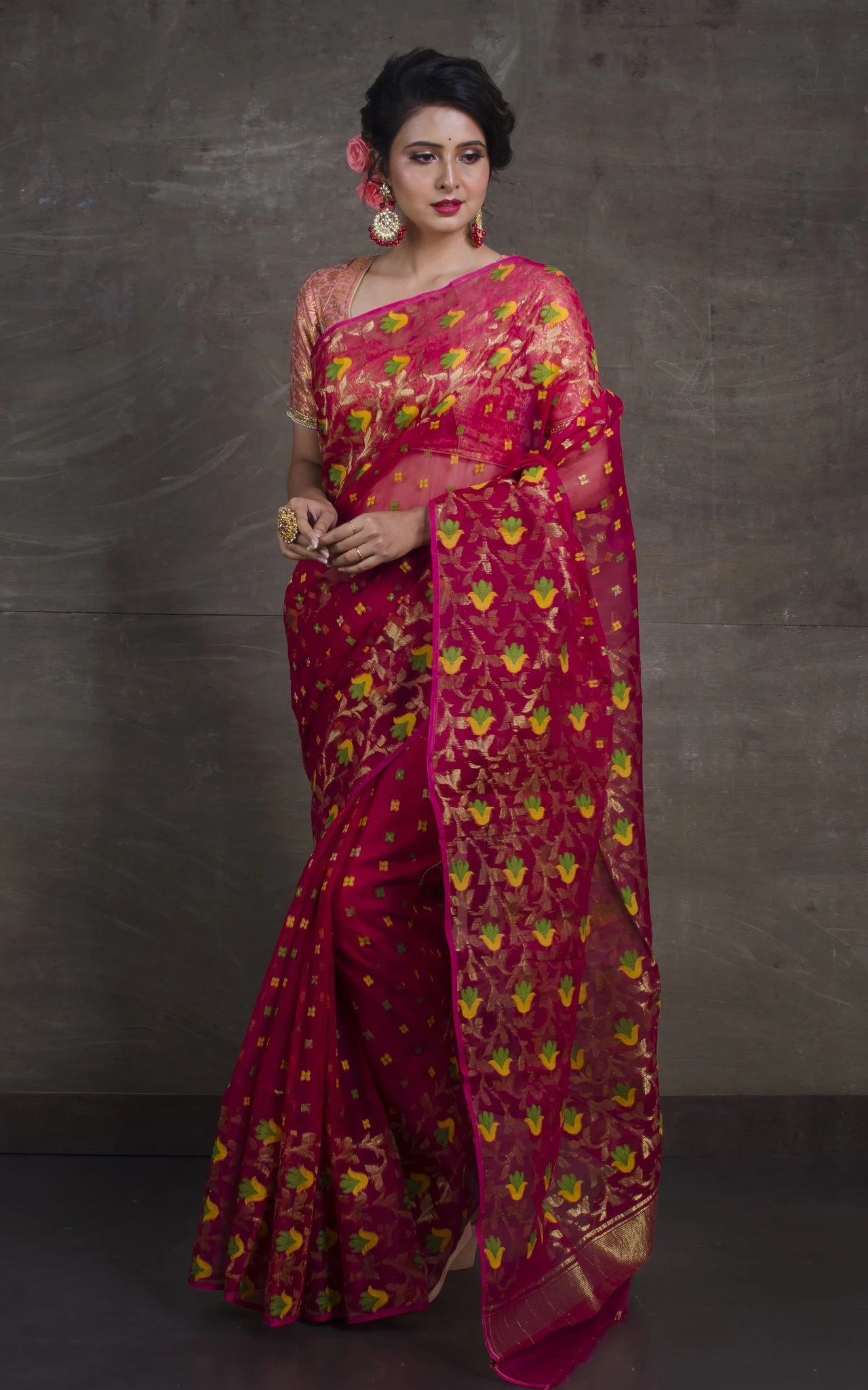 Tags: cotton silk jamdani, cotton jamdani, dhakai jamdani, handloom jamdani, tant jamdani